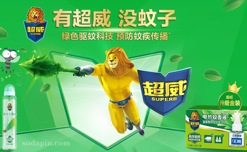 超威品牌從1個規格蚊香發展至今,已涵蓋蚊香、電蚊香片、電蚊香液、氣霧劑、誘餌/陷阱、驅蚊液六大類別的家居殺蟲領域。超威致力于打造成為"植物、安全"的家居殺蟲專業品牌,卓越的產品品質令"有超威就是沒蚊子"的宣稱深入人心,隨著超威品牌的不斷發展,超威倡導的"植物驅蟲、安全呵護"的品牌理念日益被廣大用戶接受并認同。