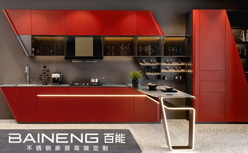 傳統櫥柜極易受潮、受霉,而且使用使用壽命極短。在櫥柜行業探索10年之久的百能人,集中技術骨干力量,在極其苛刻的廚房環境下對上萬種材質進行組合測試。百能人驚喜地發現SUS304不銹鋼材料在高溫、潮濕環境中穩定性優于其他材質,百能櫥柜迅速將304不銹鋼替換木質基材推出市場,獲得好評如潮,由此開創不銹鋼櫥柜傳奇。